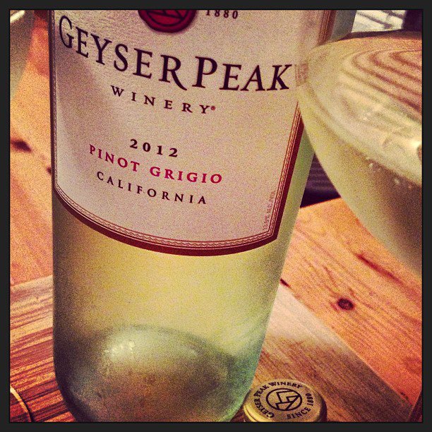At 5:30pm, it was time to do some “market research” (hint, hint ;-)) so I headed to the refrigerator and pulled out a bottle of the Geyser Peak 2012 Pinot Grigio. I was quite shocked to learn the 2012 vintage was already out! The bottle was a clear flint with a screw cap…I am beginning to like screw caps more and more, especially for whites and rosés. The alcohol stated on the bottle was 13% by volume. I picked this bottle up for $12.99 at my local grocery store.