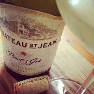 What a beautiful Sunday. The sun was shining…it was about 65 degrees in sunny east bay California. This was a great day to pop open the Chateau St Jean 2011 Pinot Gris. I did happen to find this wine at my local grocery store for $8.87. It regularly sales for $12.67. I thought what a great deal so I brought it home for dinner and a movie.